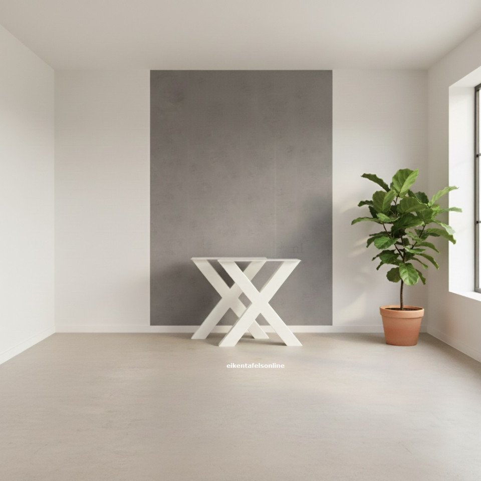 Metalen tafelpoot in X model. Deze X poot word ook wel kruis poot genoemd. Een model wat altijd past.