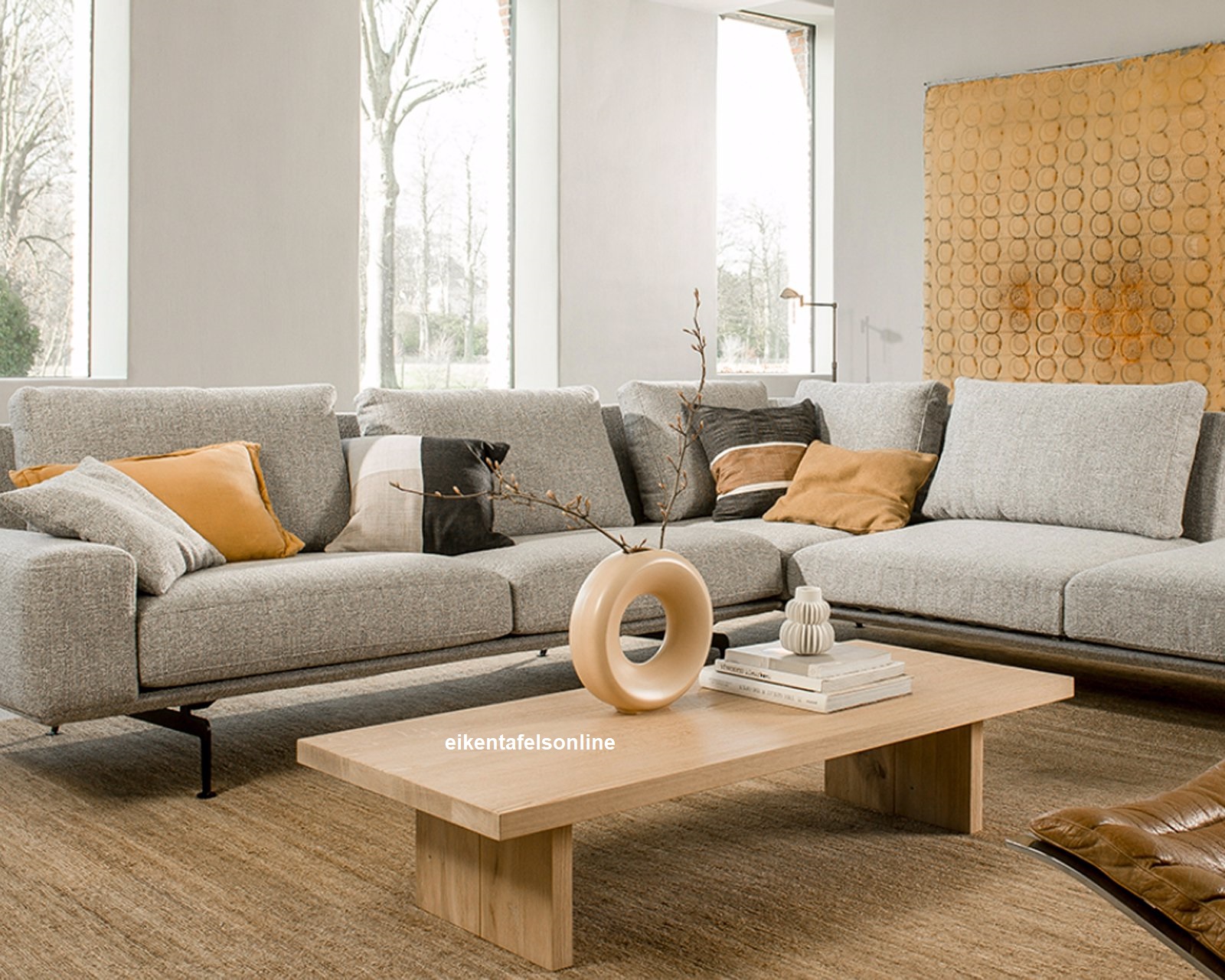 Eiken salontafel Bonaire. Een mooie salontafel bij u in huis. Het blad is 4 cm dik massief. Frans eikenhout. De massieve poten zijn ook van eikenhout en staan onder de gehele breedte van de salontafel. Een stevige salontafel die heel stabiel is. Net even iets anders dan de standaard modellen.